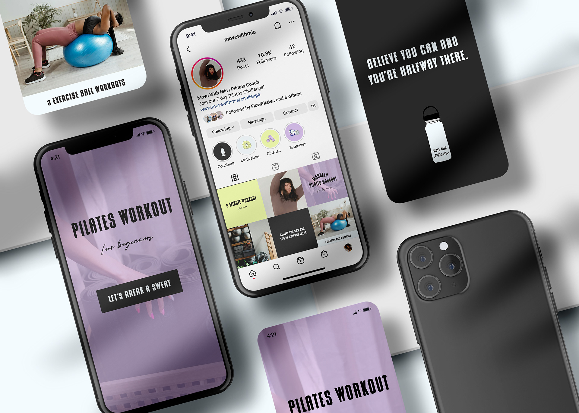 Imagery: Bright, airy spaces with women practicing Pilates, shots of Mia coaching with warmth and encouragement, and moments of focus, strength, and joy.